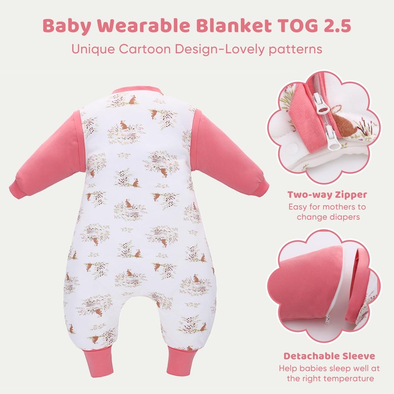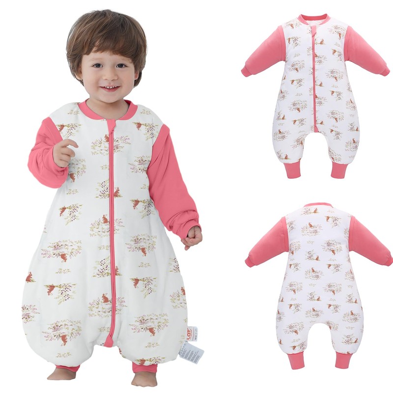 - Comfort and Flexibility: Detachable sleeves adapt to different temperatures. Our sleep sack with legs added leg width, allowing your baby to kick, wiggle, and bend their knees effortlessly.