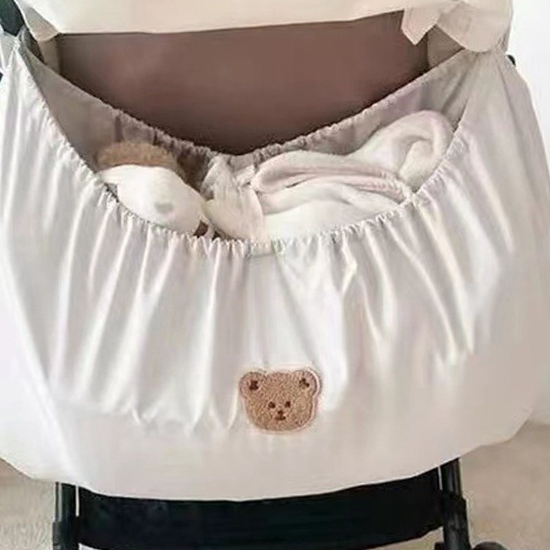 Baby Stroller Bag Minimalist Style Portable Large Capacity Elastic Flexible Polyester Fiber Hanging Diaper Bags Beige