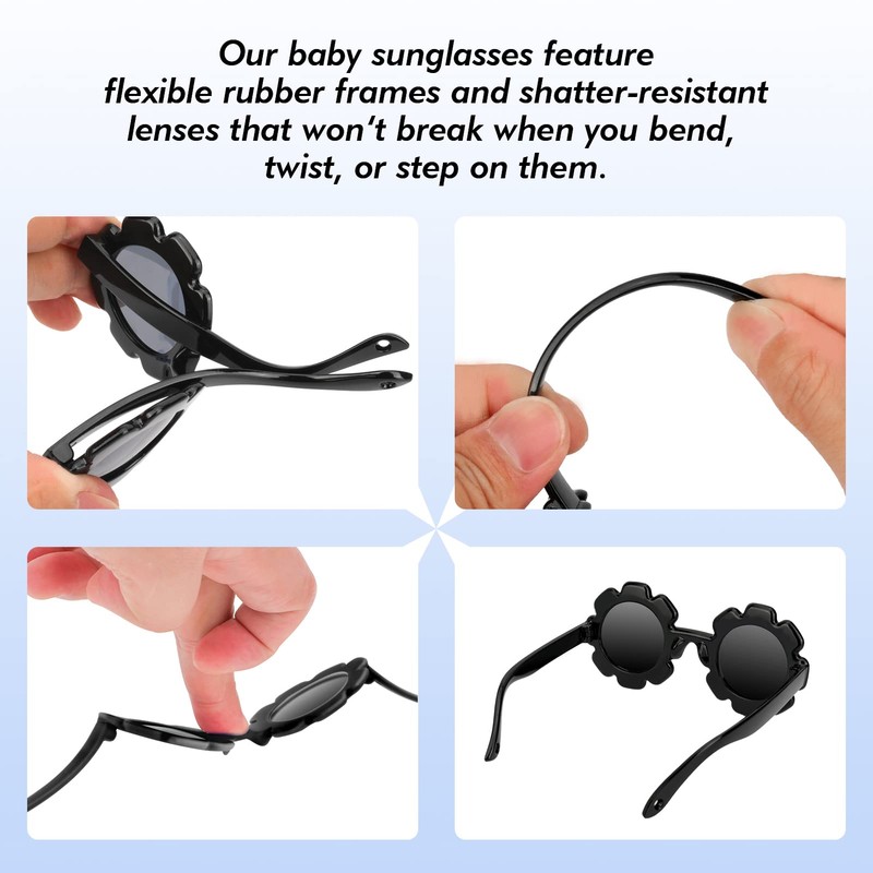 Baby Sunglasses with Strap, Cute Flower Polarized Sunglasses UV400 Protection for Infant Baby Girl Age 0-24 Months