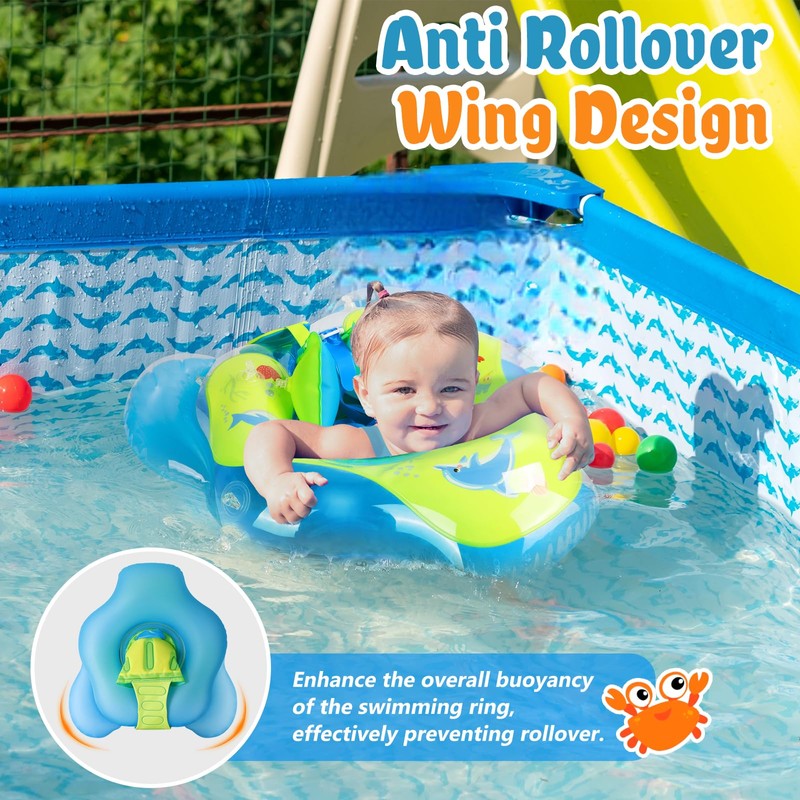- Multiple safety precautions: double air chambers, reinforced shoulder straps and a soft floor support provide secure support and prevent babies from slipping out. The unique anti-tilt design on both sides ensures stability in the water and protects the safety of children. The double safety valves guarantee the reliability of the seal. Safety is always our top priority for baby swimming ring
