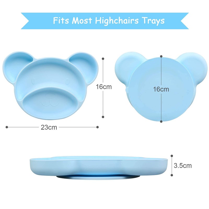 Baby Teller Set, NEWSTYLE Silikon Baby Teller Set mit Saugnapf, Baby Zubehör rutschfeste unterlage, Nettes Muster Kinderteller mit Saugnapf - 23x16x3,5 cm (Blue)