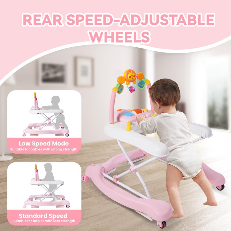 RefoereBabe Baby Walker with Wheels, 5 in 1 Baby Walkers for Boys Girls 6-12 Months, Foldable Walker Baby with Bouncer & Feeding Tray, Music, Adjustable Heights