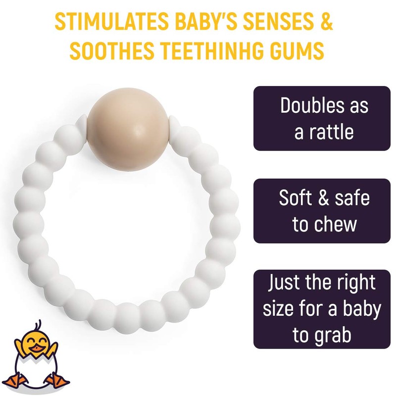 • đź’› Stimulates the baby's senses and soothes teething gums. Soft and safe to chew. Doubles as a rattle. Just the right size for baby to grab.