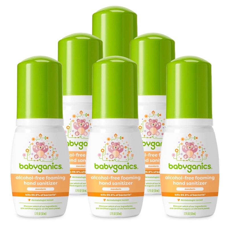 Babyganics Foaming Pump Hand Sanitizer, Alcohol Free, Travel Size, Mandarin, Kills 99.9% of Common Bacteria, Moisturizing, 1.69 Fl Oz (Pack of 6)