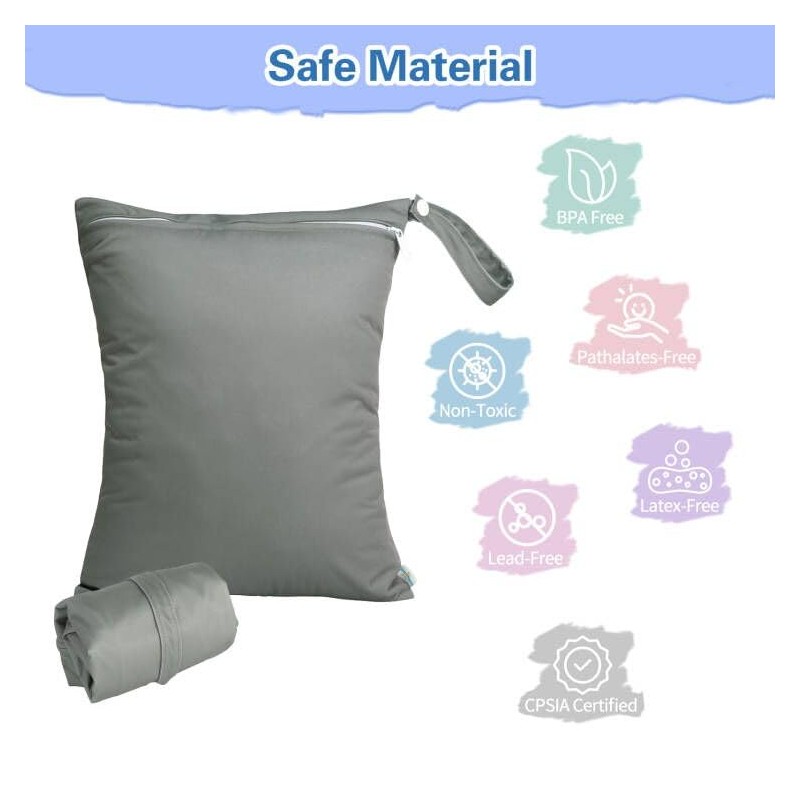 - Waterproof & Leakproof: The outer layer of wet bag is made of waterproof polyester and breathable TPU material. They are safe to preserve baby products, as they are completely free of dioxins, sodium polyacrylate and other chemicals.
