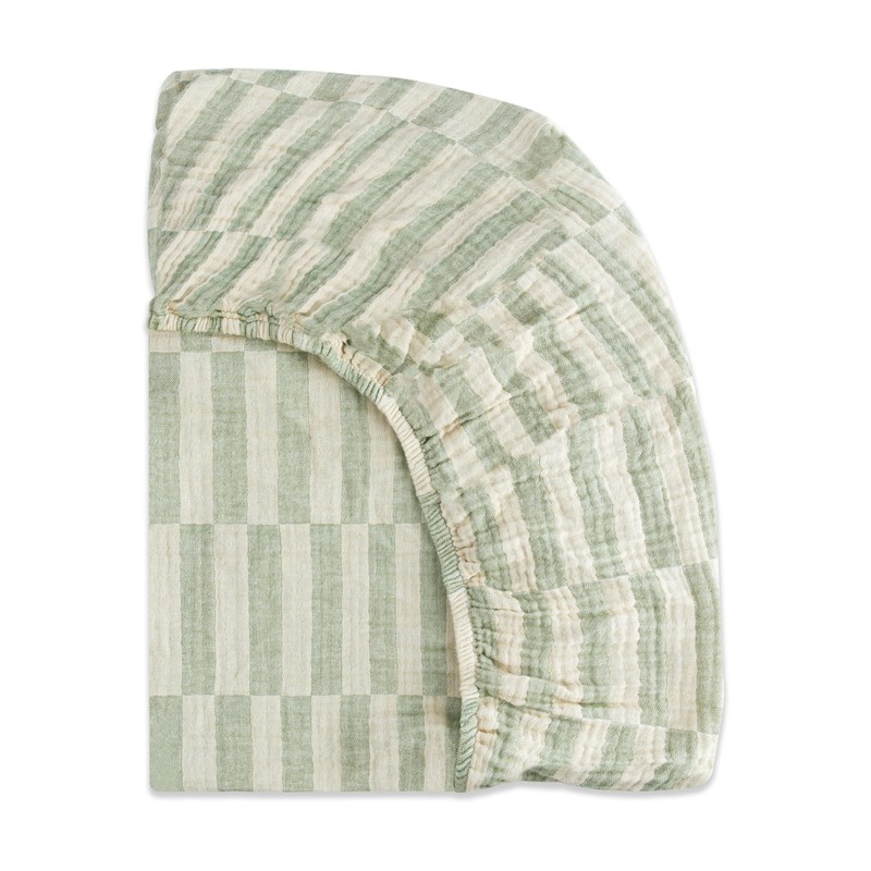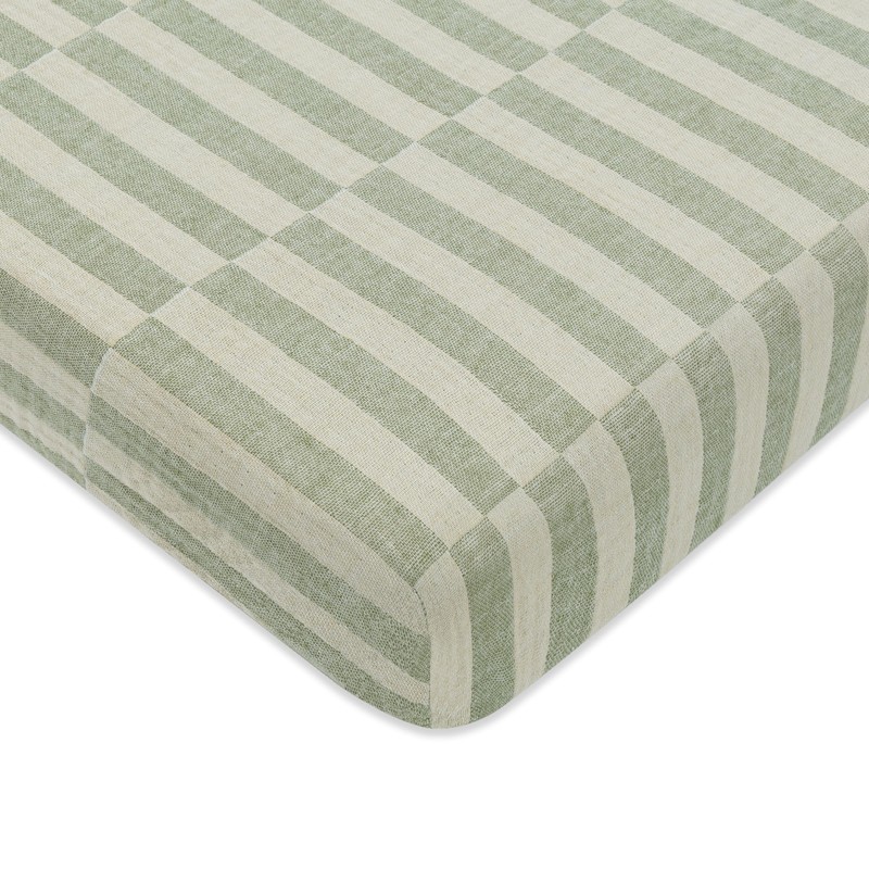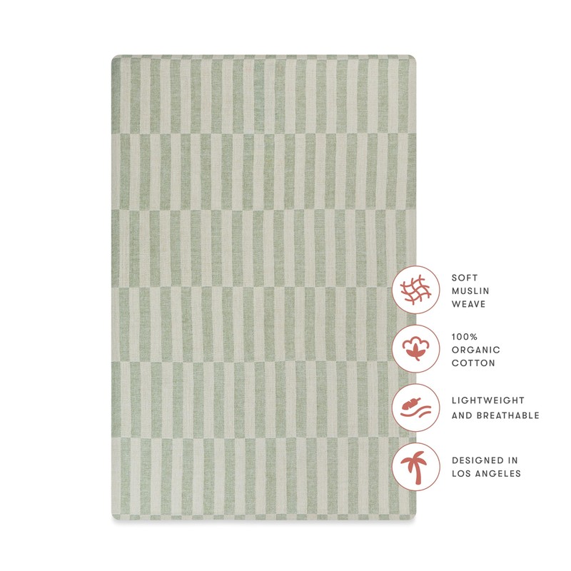 Babyletto 100% Organic Cotton Mini Crib Sheet, GOTS-Certified, Fitted 360°, Ultra-Soft and Breathable Muslin - Moss Green Offset Stripe