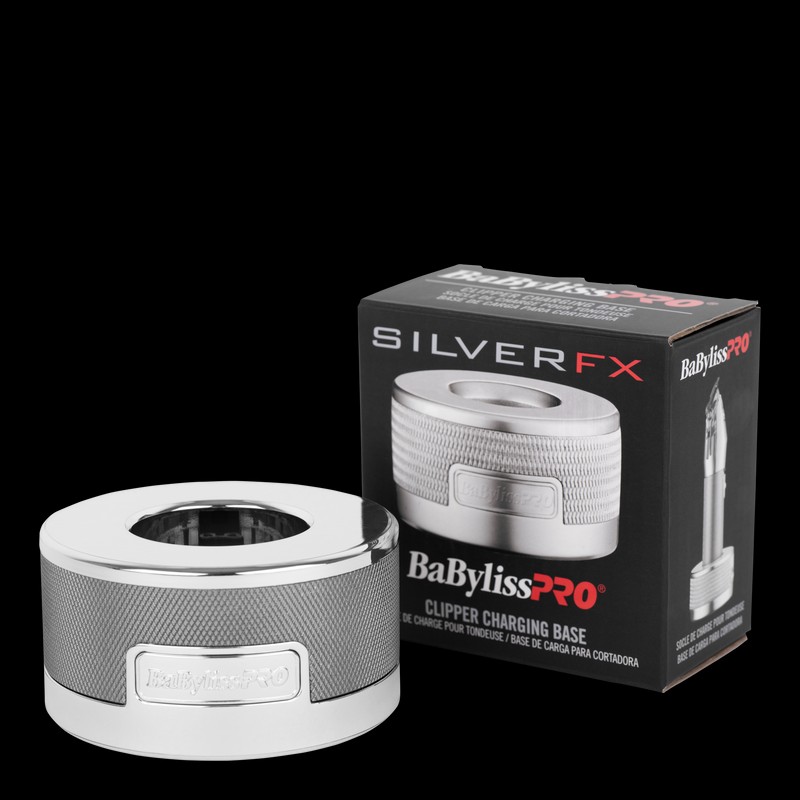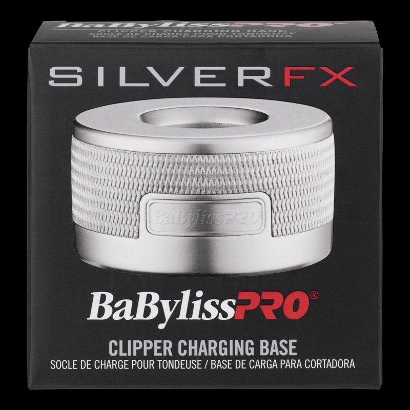BaBylissPRO Charging Base Clipper - Silver is a solid metal charging base that fits all BaByliss PRO FX870 hair clippers, including RedFX, GoldFX, RoseFX, SilverFX, BlackFX, and WhiteFX.