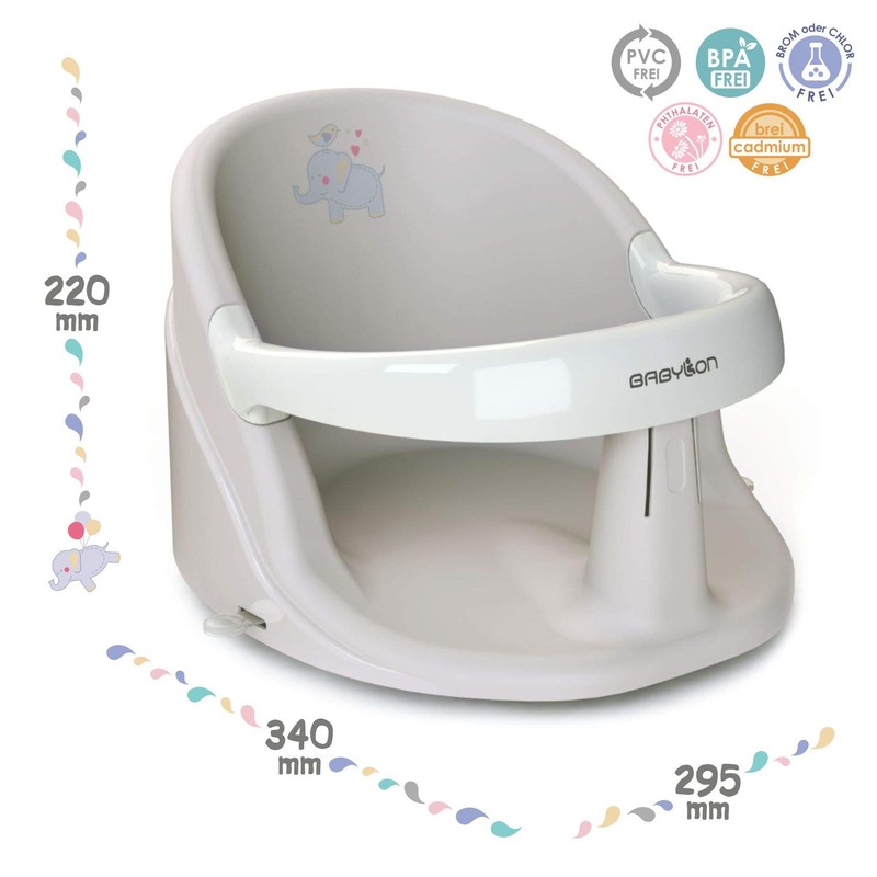 BABYLON Anatomical Baby Bath Seat Nemo Bath Seat with Non-Slip Suction Cups from 6 Months Bath Accessories for Girls and Boys Baby Bath Insert Grey