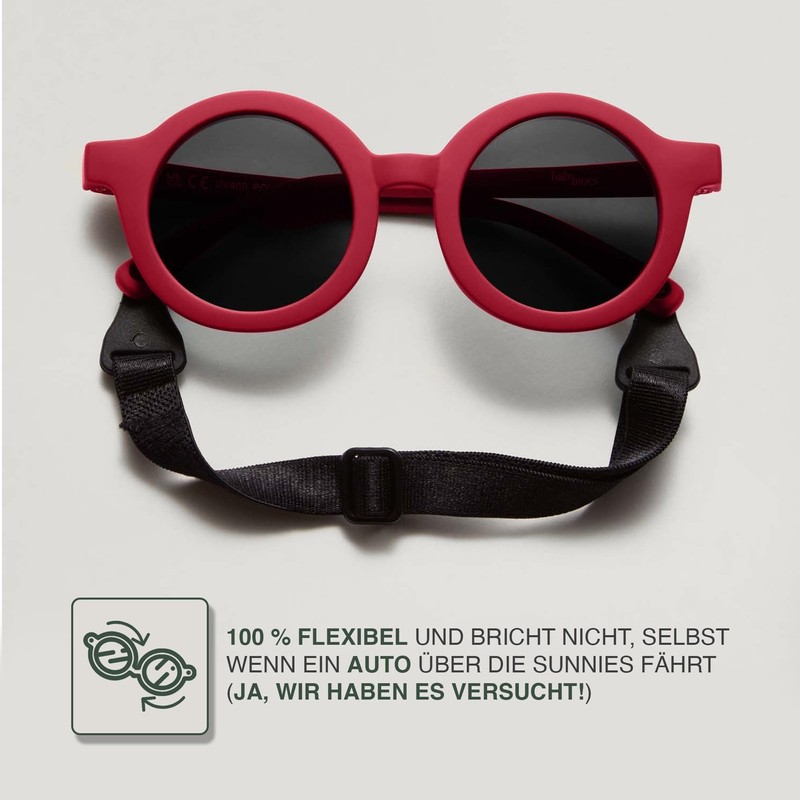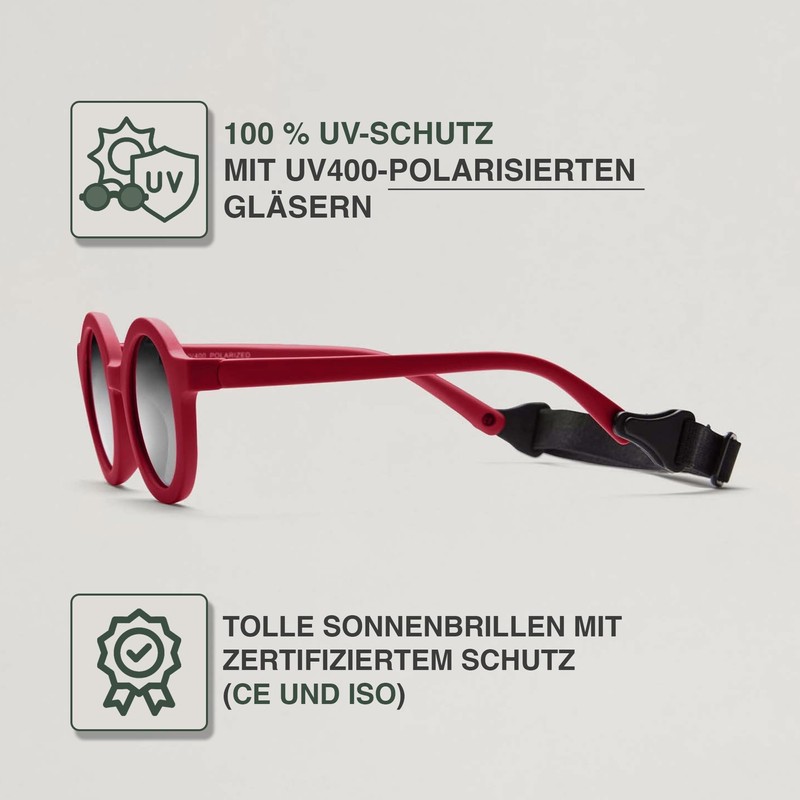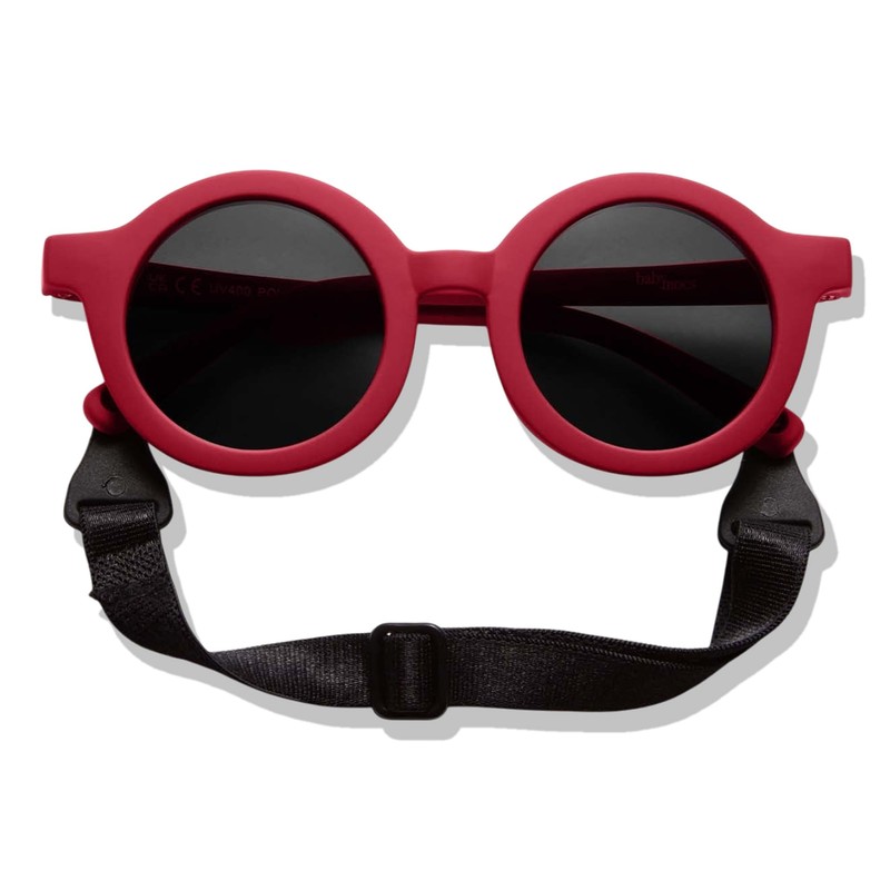 BABYMOCS Round Sunglasses Children 1.5 Years - 8 Years | 100% UV Protection | Flexible | BPA-Free | Non-Toxic Sunglasses Toddler with Strap | Swedish Design | Toddler Sunglasses, red