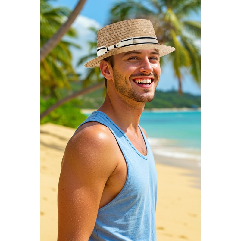 BABEYOND Men's 1920s Brim Boater Hat Gatsby Straw Hat 20s Costume Accessories