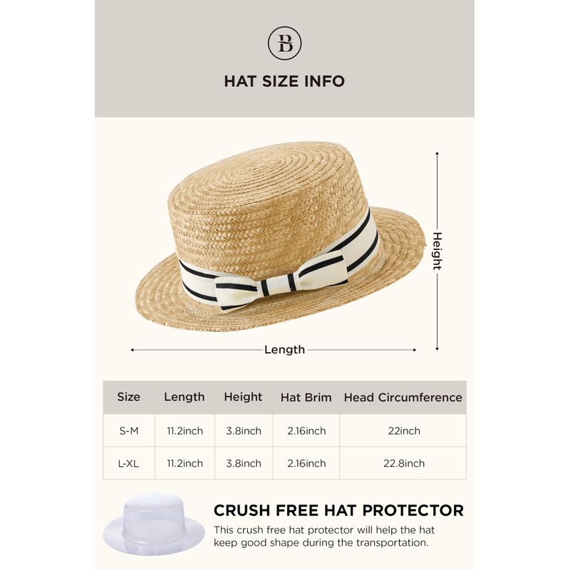 - Design: This straw brim boater hat has stylish hard brim and large crown with ribbon wrapped around, which will add a tasteful touch in your dressing style both on formal and casual occasions.