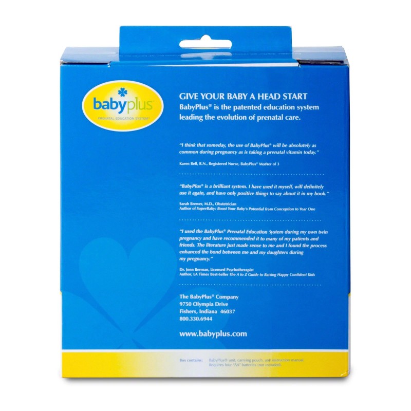 You wouldn't think of missing the daily prenatal vitamin that nourishes your baby's earliest physical development, but what about his or her early cognitive development? The BabyPlus Prenatal Learning System offers a simple daily practice that promotes strong prenatal cognitive development and has measurable benefits that last a lifetime. BabyPlus introduces patterns of sound similar to the maternal heartbeat. As your baby compares the sounds to the ever-present heartbeat, early enrichment begins. Parents around the world who have used BabyPlus report that their babies: were born relaxed and alert, nursed more readily, had an increased ability to self-soothe, and were able to establish healthy sleeping patterns. Later in life, parents report that their children: show strong developmental milestone achievement, have longer attention spans; and enjoy strong learning and school readiness. Learn more now about the lifelong benefits of BabyPlus!