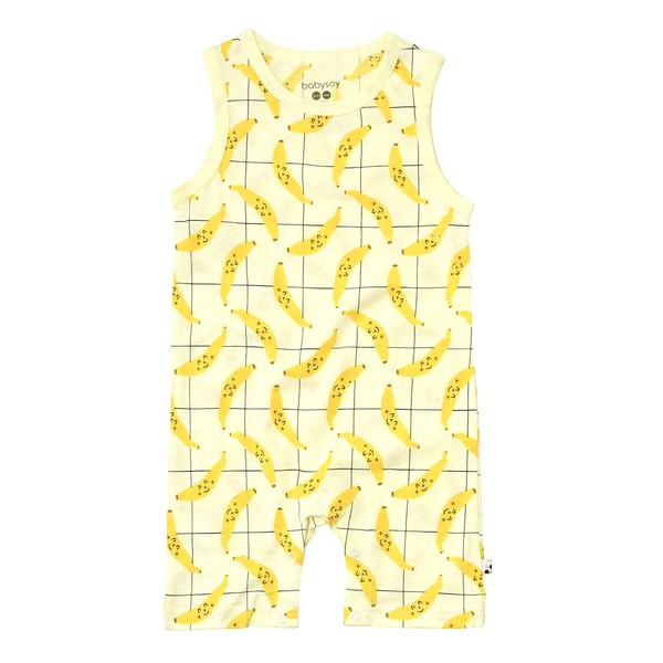 Babysoy Pattern Print Tank Romper Shortall (18-24 Months, Bananas)