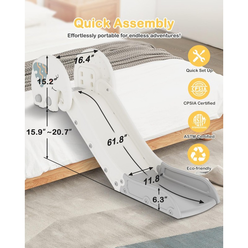 Babytronic Couch Slide for Kids – Large Adjustable Height Indoor Slide with Non-Slip Base for Toddlers 1-3, Plastic Indoor Playset for Beds, Sofas, and Stairs (White&Gray)