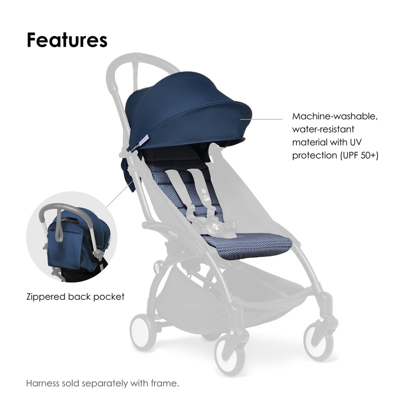 BABYZEN YOYO 6+ Color Pack, Air France Blue - Textiles Only: Seat Cushion, Matching Canopy & Zippered Back Pocket - Requires YOYO2 Frame (Sold Separately)