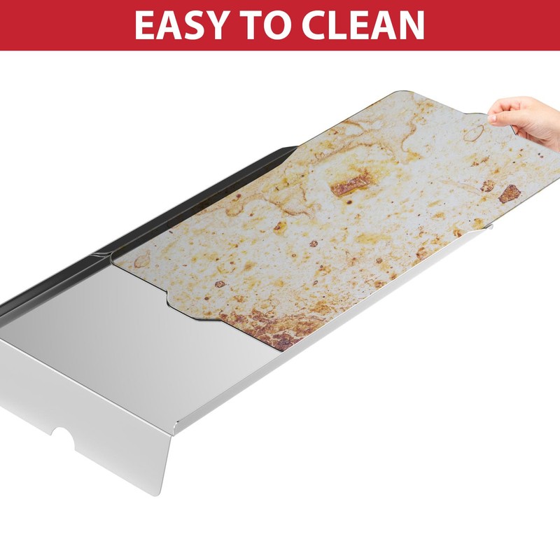 • ✔️Disposable Aluminum Grease Liners fits perfectly into the drip tray to ensure the grease stays put, and won't stain the grill. Place the liners in the drip tray and when you're done cooking, remove and throw them away for quick and easy cleanup!
