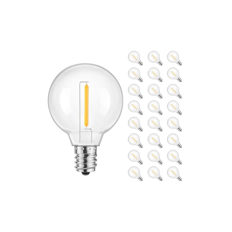 Bacane Bombillas de Repuesto LED G40 para Guirnaldas de Luces, Bombillas Irrompibles con Base E12, 1W Igual a 5W, Blanco Clido 2700k, Paquete de 25,