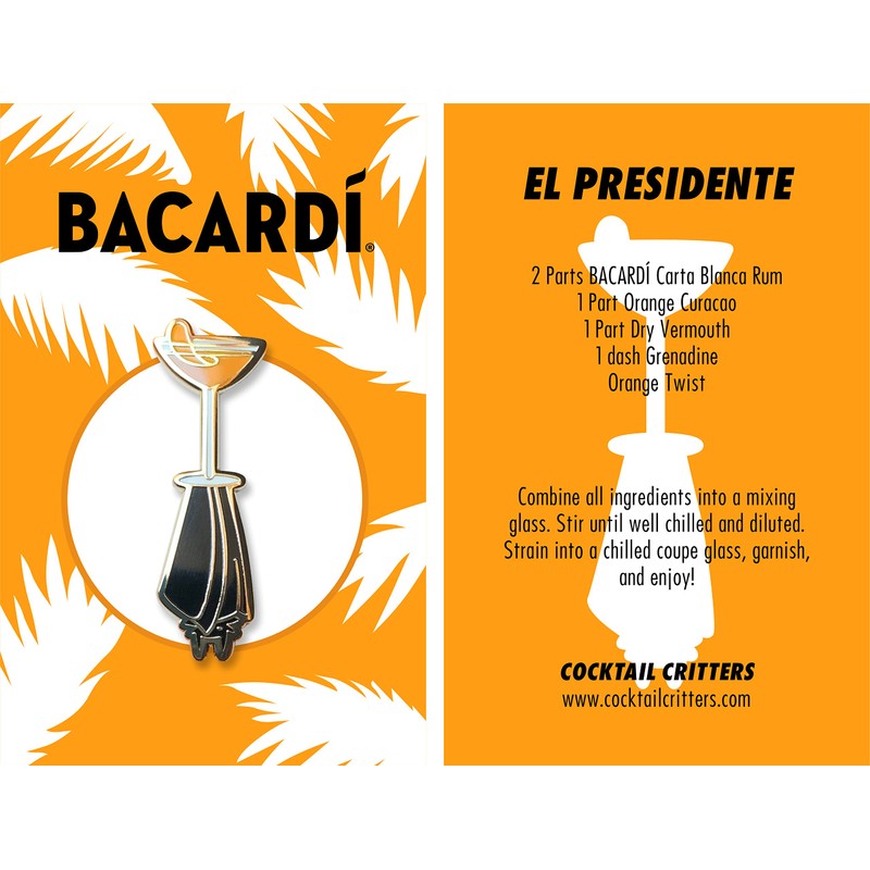 Bacardi Cocktail Enamel Pins for Bartender Aprons, Jackets, Backpacks and Purses, Shirt and Suit Lapels, Button Badges Brooch Fashion Jewelry, Nickel, no gemstone