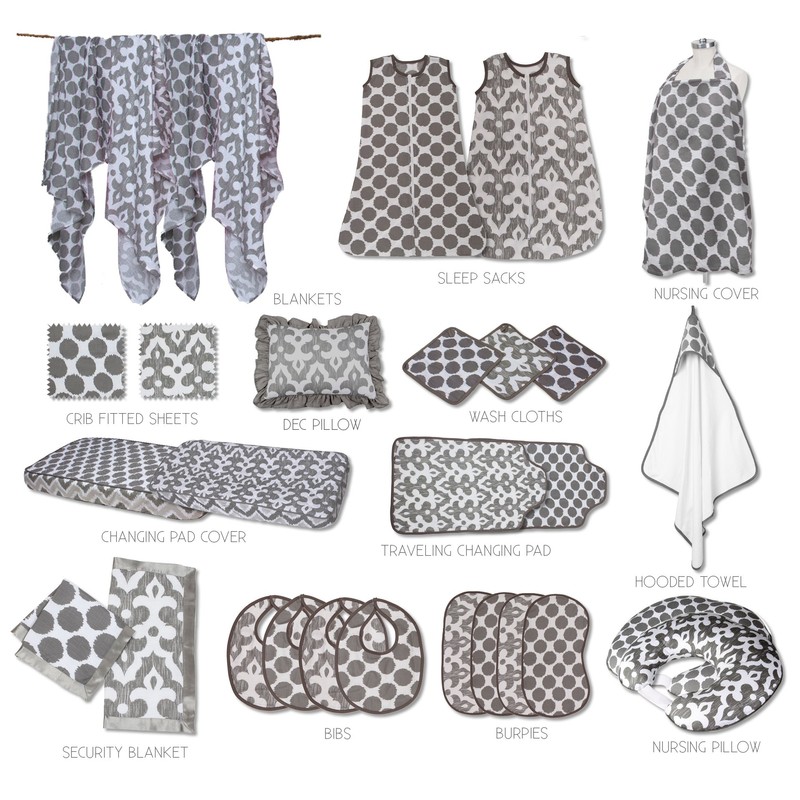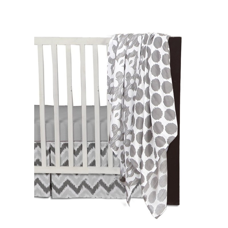 Bacati - 2 Pack Essentials Classic Super Soft Breathable 100% Cotton Muslin Baby Crib Fitted Sheets - Fits Standard 28 x 52 x 5 Crib & Toddler Mattresses (Ikat Damask Grey)