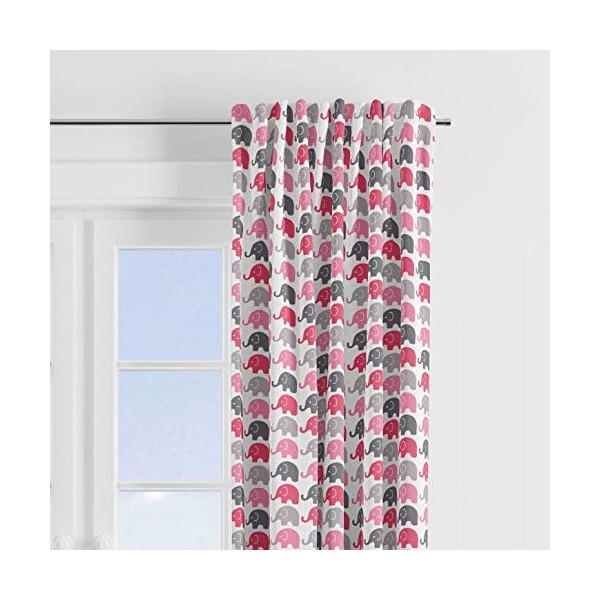 Bacati - Elephants Elephants 100% cotton percale Light Filtering SINGLE Curtain Panel (PINK/GREY)
