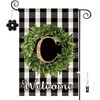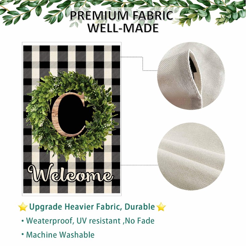 Baccessor Monogram Letter C Garden Flag 12.5 x 18 Inch, Buffalo Plaid Family Last Name Initial Boxwood Wreath Welcome Vertical Double Sided Small Flags for Outdoor Outside Decoration