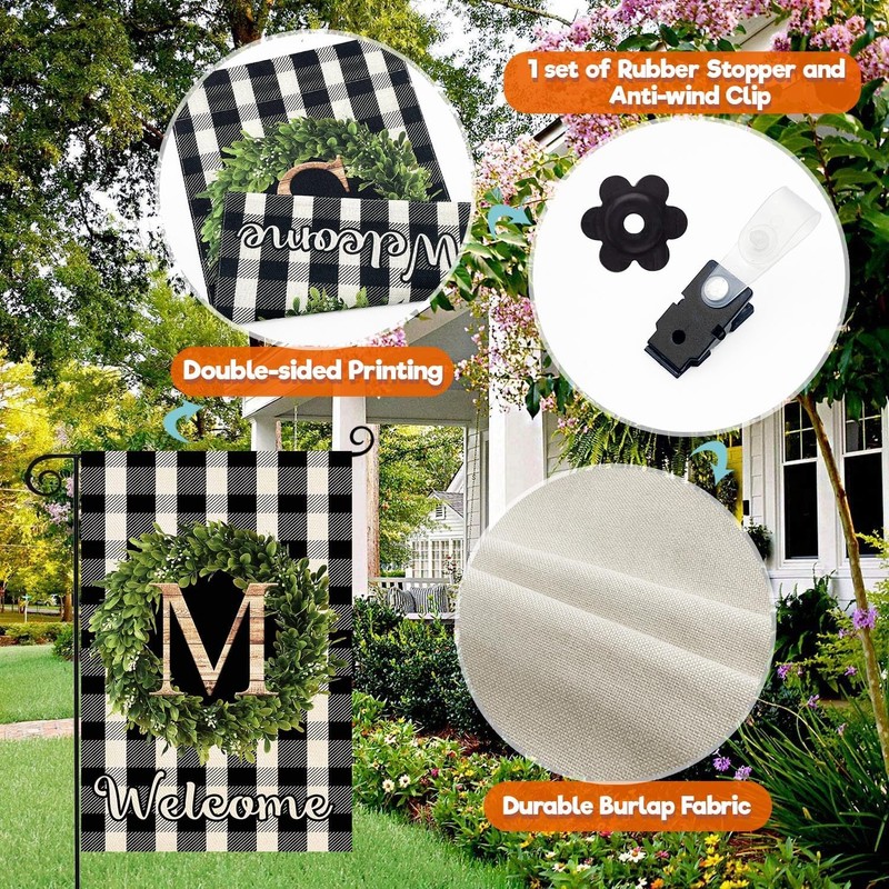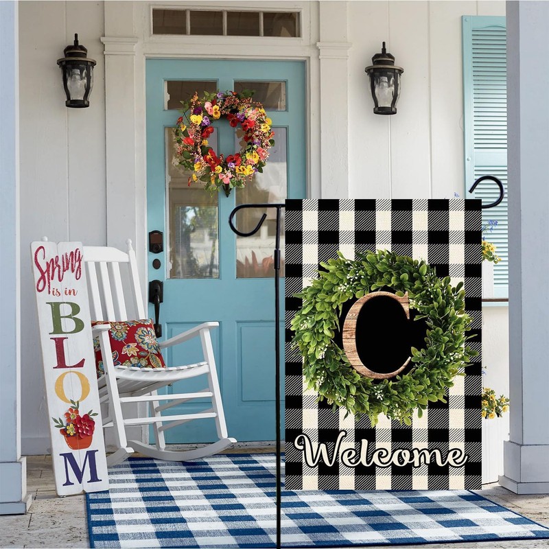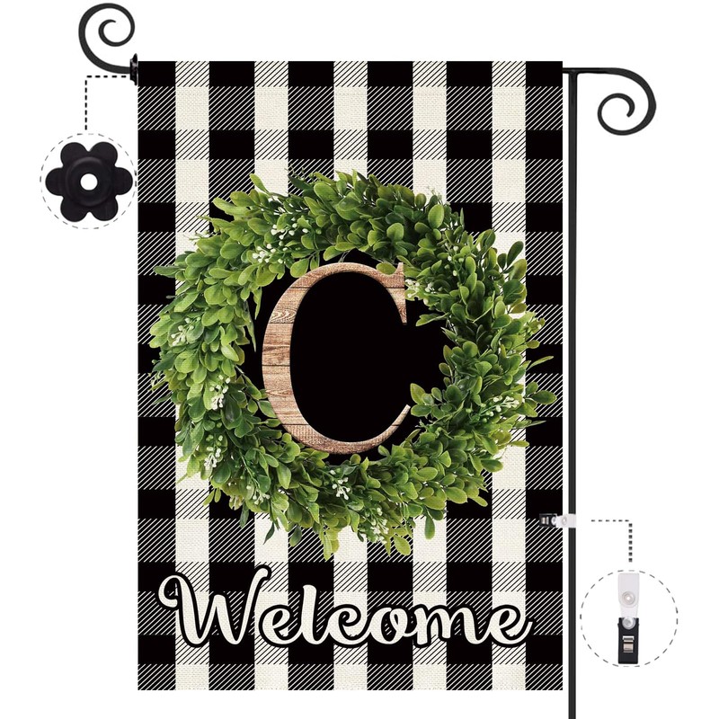 - Unique Design And Great Decoration:Designer Ms. Chen from Baccessor is the authorship. She is willing to tell us, decorating your garden yard and keeping it active during the warm seasons is a great way to live. These cute boxwood wreath flags can add a festive touch and make your garden patio more welcoming and joyful. Monogram letter S welcome garden flags show your love for life and respect for traditional festivals to your friends.
