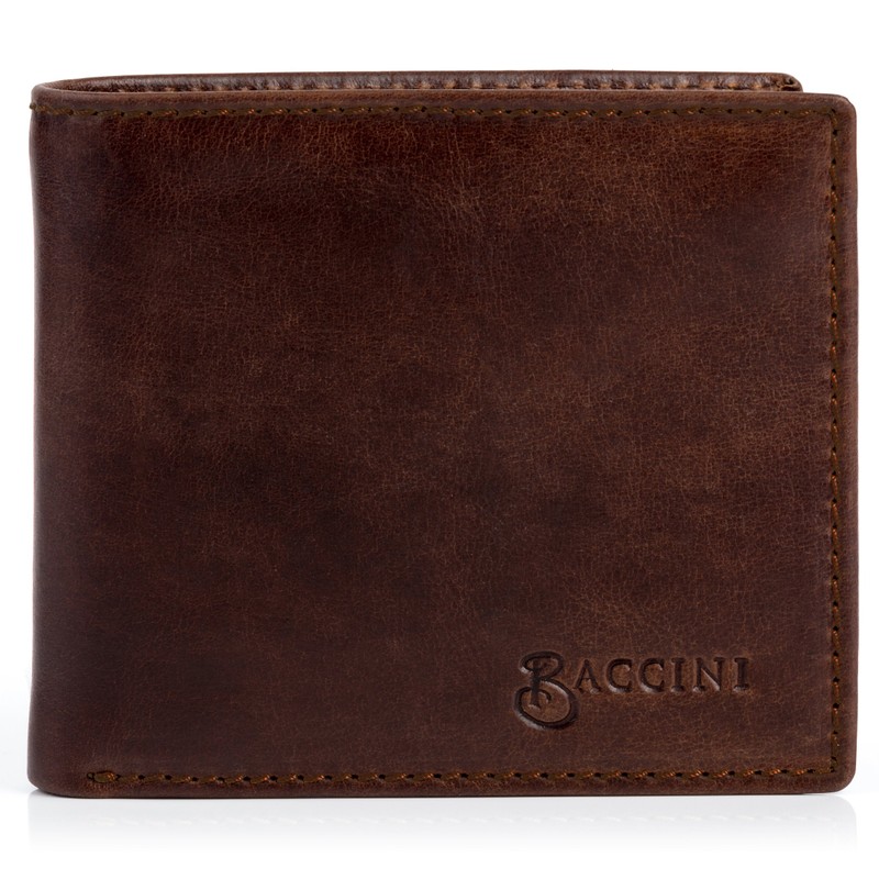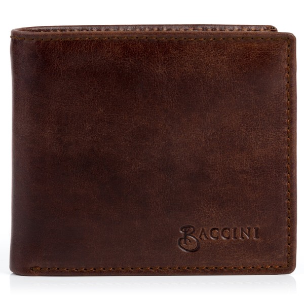 BACCINI Real Leather Billfold Wallet Leandro EastWest Portemonnaie Pocket with Multiple Card-Slots Genuine Leather Men Brown