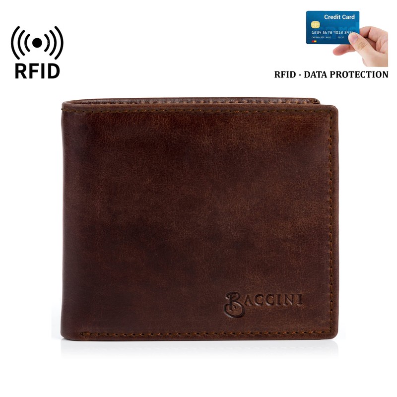 Original BACCINI handmade wallet with many compartments with RFID protection made of genuine, high-quality leather.