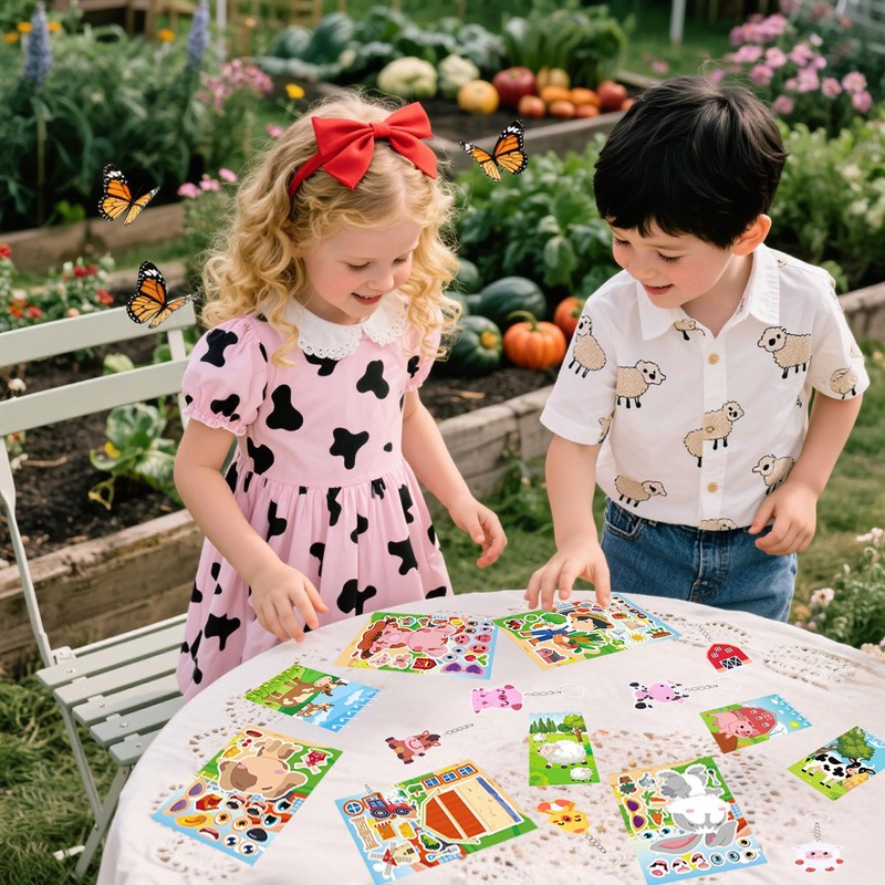 - This set includes 8 Farm Themed Mini Notebooks, 12 pieces of Farm Theme Stickers, and 8 Keychains for complete farm-style party decorations