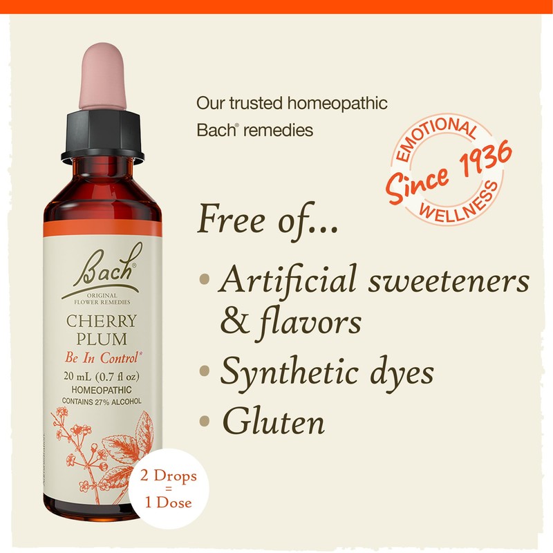 Bach Original Flower Remedies, Cherry Plum - Be in Control - Natural Homeopathic Flower Essence for Emotional Balance - Vegan, Gluten Free, Sugar Free - 20mL Dropper