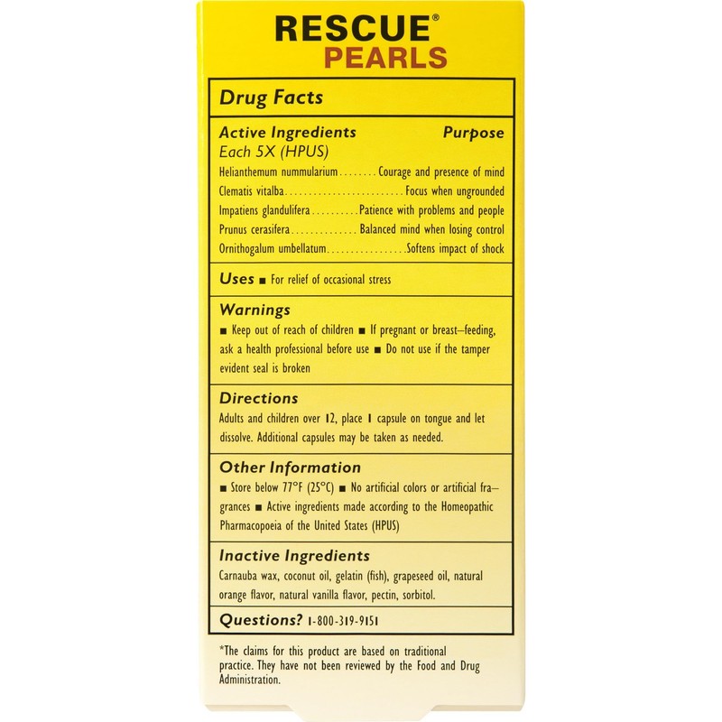 - BACH RESCUE PEARLS: Cápsulas de disolución rápida con sabor a vainilla de naranja natural de sabor agradable para ayudar a aliviar la sensación
