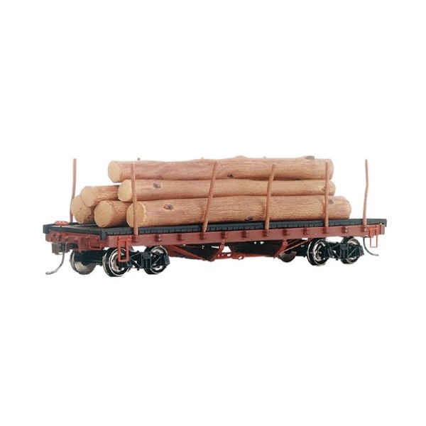ACF 40' log car with logs includes blackened machined-metal wheels with RP25 contours. It is magnetically operated, body mounted E-Z Mate couplers. Non- magnetic, blackened brass axles with needlepoint bearings. Celcon trucks added weight for optimum tracking.