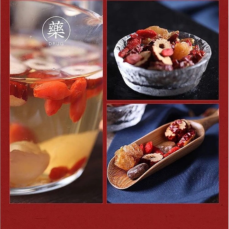 - 【特長】茶気血茶女グループ花茶養生茶,スープは金色で、味は滑らかで、余韻は長い。入り口は滑らかで、甘く、さわやかです。ほんのり甘くて、唇の歯に香りが残ります。桂圓、枸杞、紅棗3種類の具。個別にパッケージ化, 持ち運びが簡単。品質干し龍眼 、赤ナツメとクコを厳選し、材料が厚く、肉眼に見える本物の材料で、桂園肉は透き通っていて、甘くて飽きず、蛋白質と多種のミネラルを豊富に含んでいる。赤いナツメのスライスを精選して,カリカリしておいしい.。寧夏クコは、粒がふっくらしていて、食感が良くて甘く、カロチン、ビタミン、カルシウム、鉄などの健康な養生元素が豊富に含まれている。植物の果実には天然糖分が豊富に含まれており、砂糖を入れる必要はない。