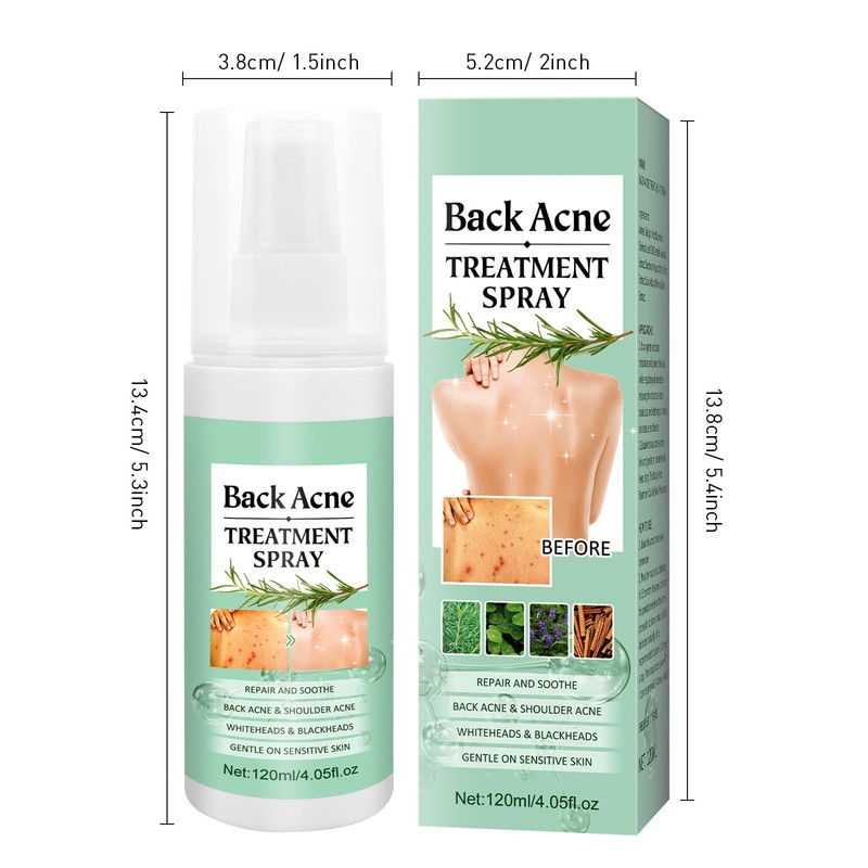 - 【Powerful Herbal Formula】Our back acne treatment spray features a powerful herbal formula that includes tea tree oil and other herbal extracts, which help to reduce sebum accumulation and acne while keeping your body skin smooth and delicate.