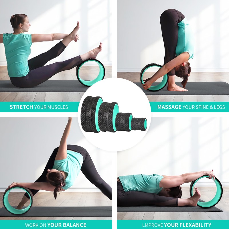 - FOUR SIZES: Comes with four sizes of yoga wheels: (13.0 ″, 10.6 ″, 6.7 ″, 4.7 ″), targeting specific parts of the back, legs, calves and neck. The smaller the size, the more precise the massage, the larger the size, the better the back stretch effect.