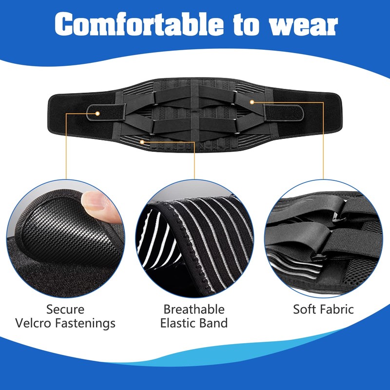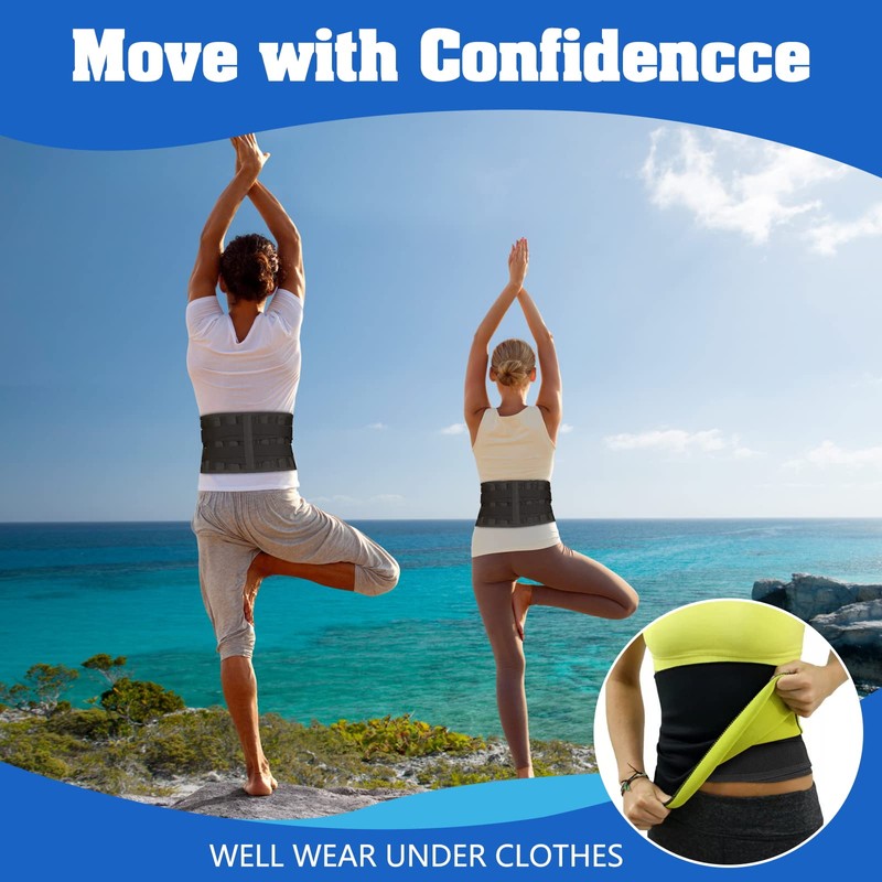 - LOWER BACK PAIN RELIEF:The back brace is effective in relieving the pains that caused by disc herniation, sciatica, scoliosis and other spine problems.It offer 360° stronger vertical support to lower back,prevent excessive rolling of your muscles and decrease the pressure on your discs . This lower back brace allows you to enjoy your life without bother of lower back pain.