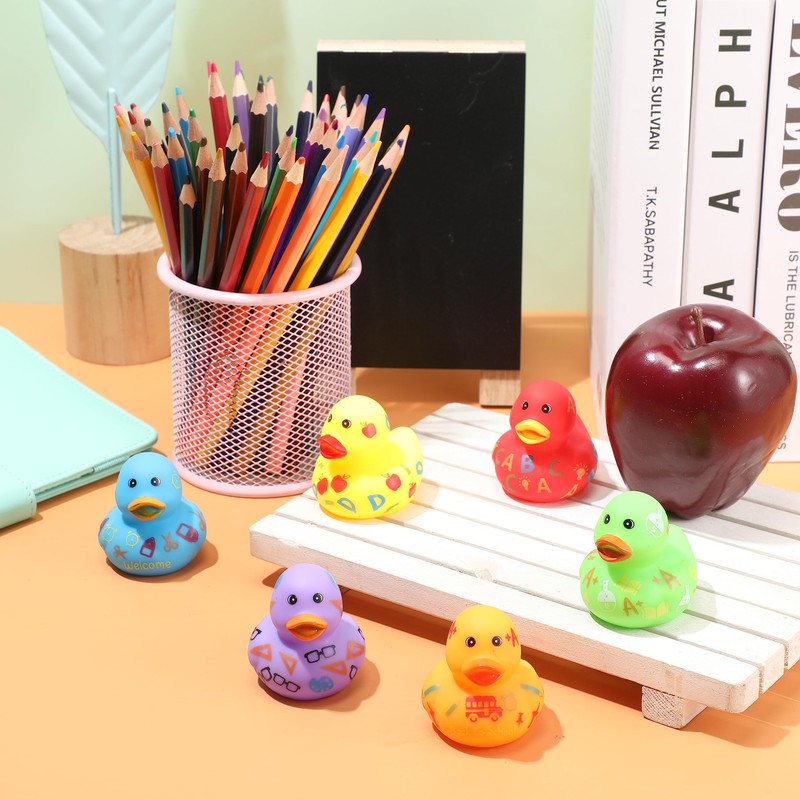 • Design for the Welcome Back to School: these small rubber ducks feature classic welcome back to school elements like scissors, pencils, letters, and school bags, which better cater to the theme, making your back to school party funny and interesting, and can also be applied as cake toppers, for class handouts, preschool parties and so on