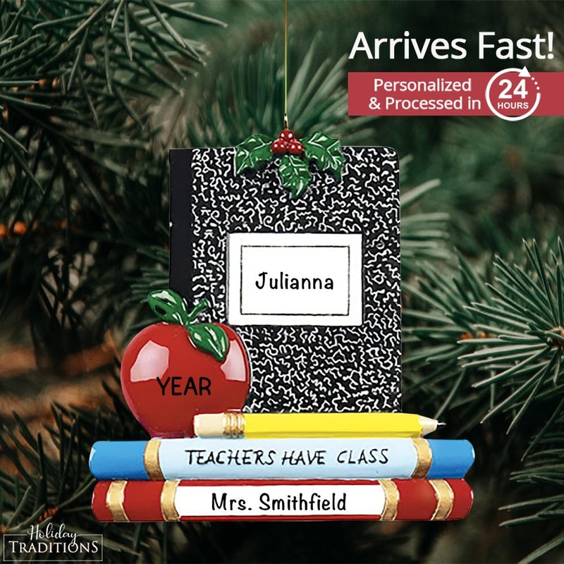 Back to School Personalized Christmas Ornaments 2023 - Fast & Free 24h Customization – Teachers Have Class Christmas Decorations with Name - Comes Gift-Wrapped