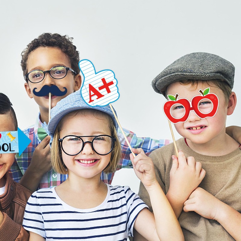 - Back To School Photo Booth Props includes 24 packs Back To School shaped cardboard cut outs photo booth props party supplies in 24 different styles, and these school themed photo booth props are easy assembly with glue dot and wood sticks.
