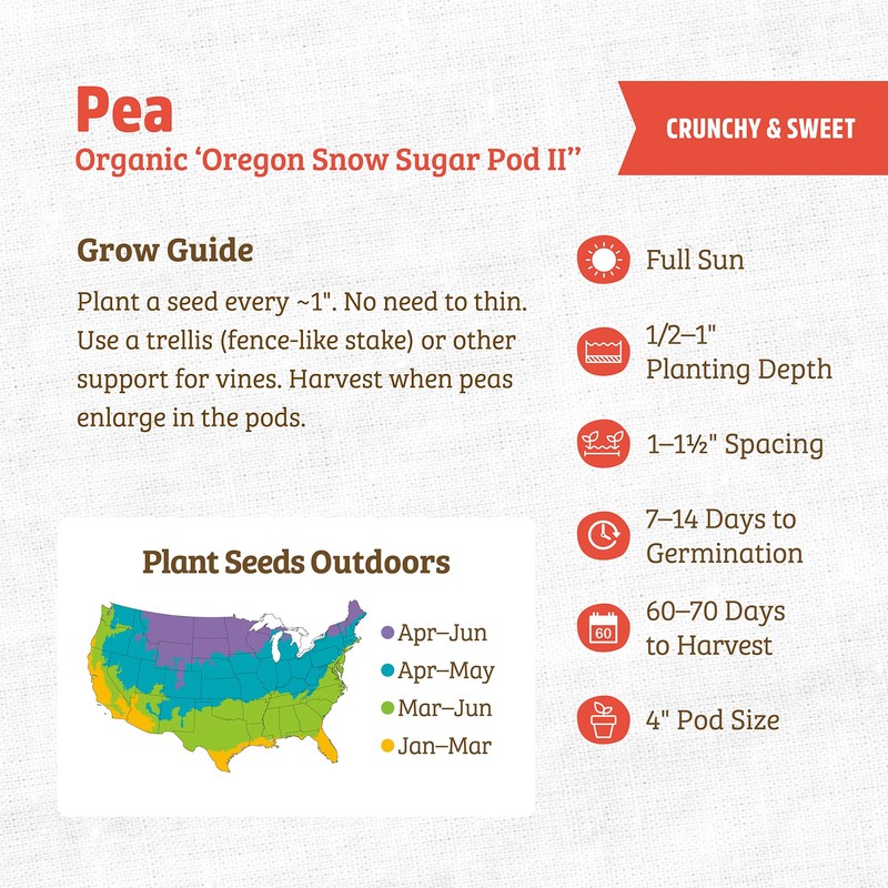 Back to the Roots - 100% Organic Seed Packet - Pea 'Oregon Snow Sugar Pod II' 8.4g