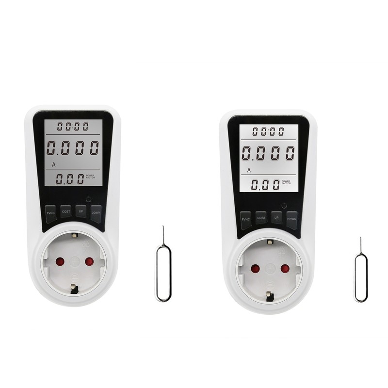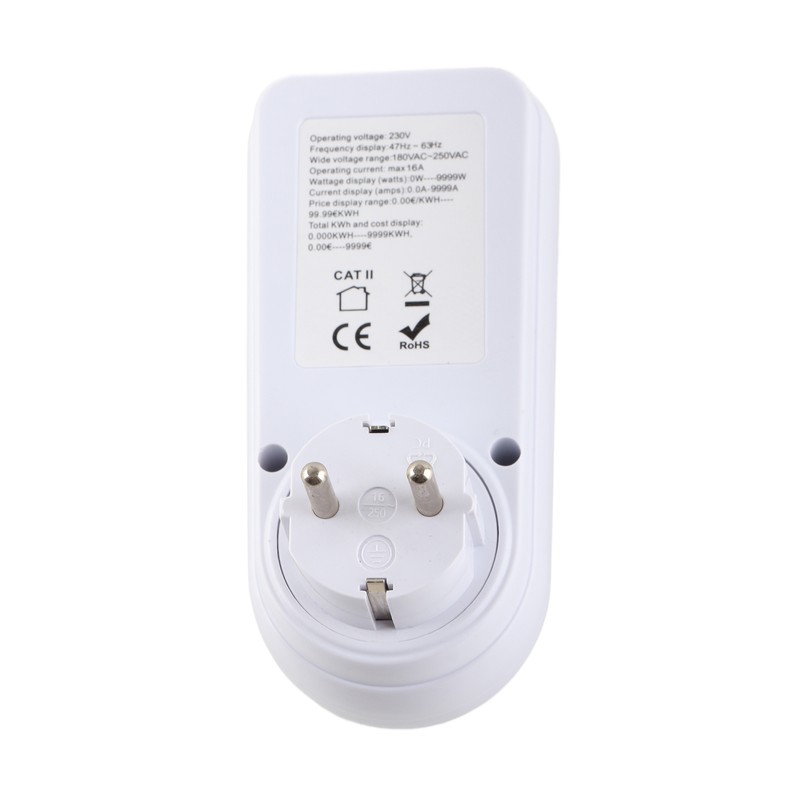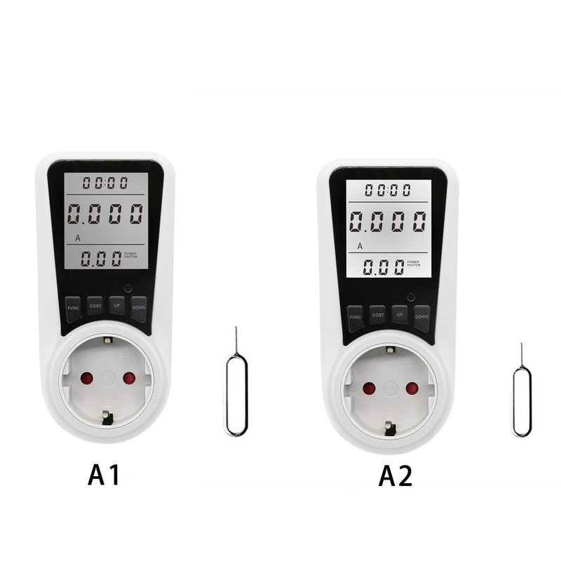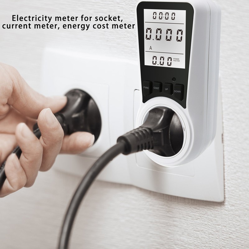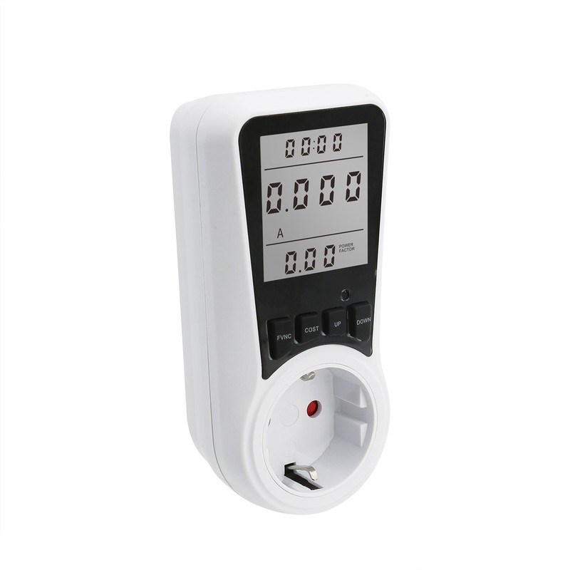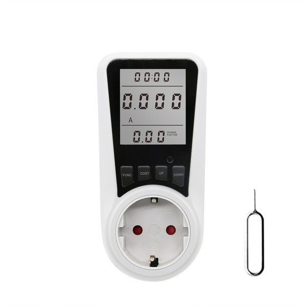 1、1. 7 Monitoring Modes: A total of 7 monitoring modes, this power meter for socket supports monitoring time, power, costs, accumulated power consumption, voltage, frequency, current, power factor, minimals power, maximum power, and electricity price. 2、2. Real Time Monitoring: Simply connect your electrical devices to this power consumption meter. The energy meter starts with monitoring and recording the power consumption and the electricity costs of the connected device, helping you know the electricity costs of your household appliance. 3、3. Backlight and Memory Function: With the built‑in buffer battery, this power meter can store data in the event of a power failure. Press any button to wake up the backlight for 10 seconds to check the data in the dark. 4、4. Overload Warning: When a current load of the connected device is detected of more than 3680W, the LCD screen constantly flashes "Overload" to remind the user and protect the connected device and the current meter socket itself from damage. 5、5. Easy To Use: Simply press the "FVNC" button from the energy cost meter to select the monitoring mode, the "COST" button to adjust the power price of the unit, the "UP" and "DOWN" buttons to adjust the price. "Reset" button to delete all settings, suitable for seniors and boys.