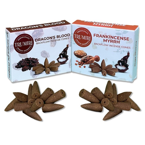 Backflow Incense Cones - Combo Pack of 20 Incense Cones Waterfall - 10 Frankincense Myrrh + 10 Dragons Blood - Incense Backflow Cones - Waterfall Incense Cones - Incense Waterfall Cones