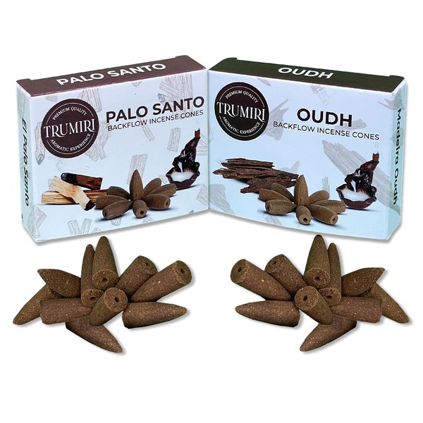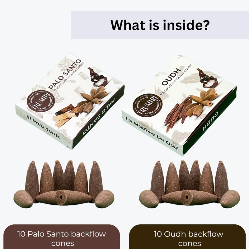 Backflow Incense Cones - Combo Pack of 20 Incense Cones Waterfall - 10 Palo Santo + 10 Oud - Incense Backflow Cones - Waterfall Incense Cones - Incense Waterfall Cones