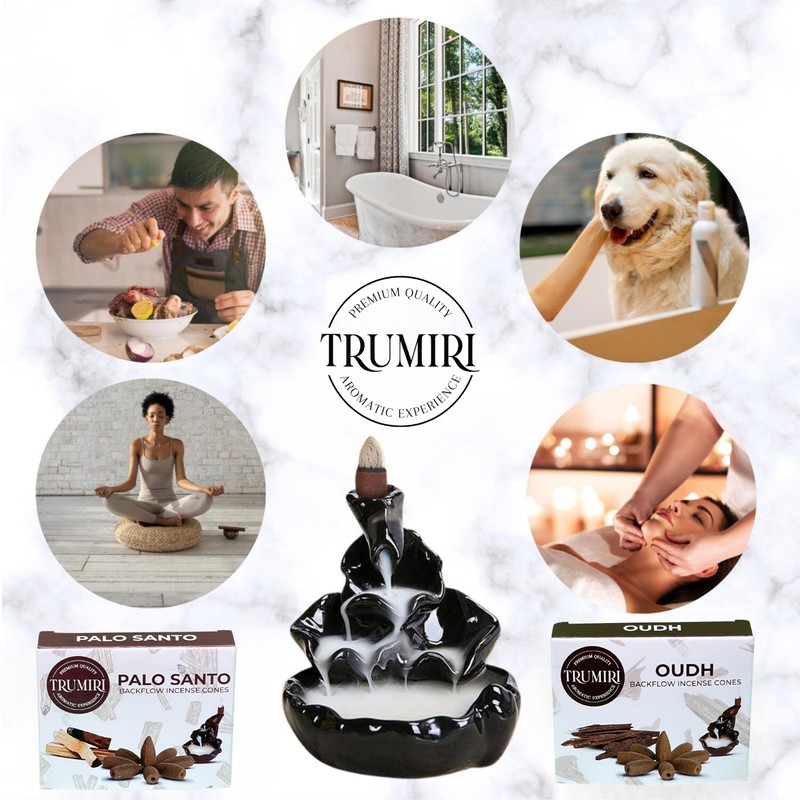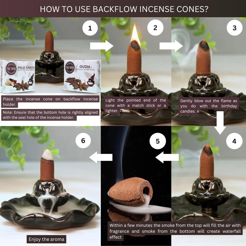 - Mesmerizing Backflow Effect: Experience the captivating beauty of our Oud and Palo Santo backflow incense cones as they release fragrant smoke that gracefully flows downwards, creating a mesmerizing and enchanting display.