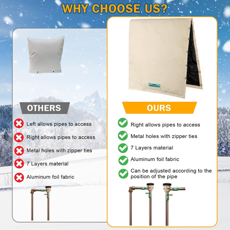 - Save Costly Pipe Repairs: Every winter, many people complain that despite the time they spend wrapping towels and tape around their pipes, the pipes break and leak, and even cost a lot of money to repair. But with this backflow insulation cover, you don't have to spend so much money again. Don’t wait before it’s too late
