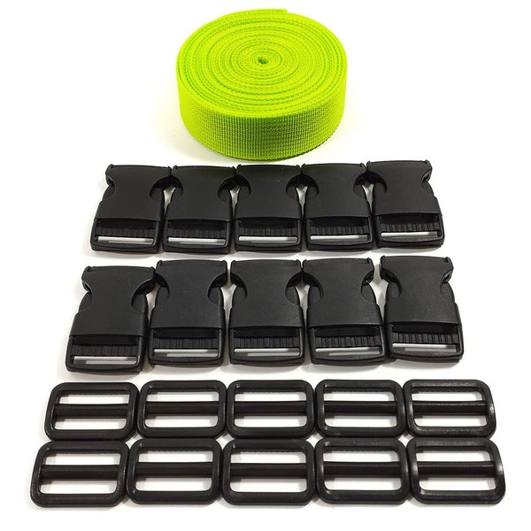 Backpack Strap (5 Meter x 25mm) + 20 Plastic Buckles, Backpack Ribbon for Sewing, Tie Cases Strap, Suitcase Luggage Holding Straps, Green Strap, (25 MMX 5 m, 232)