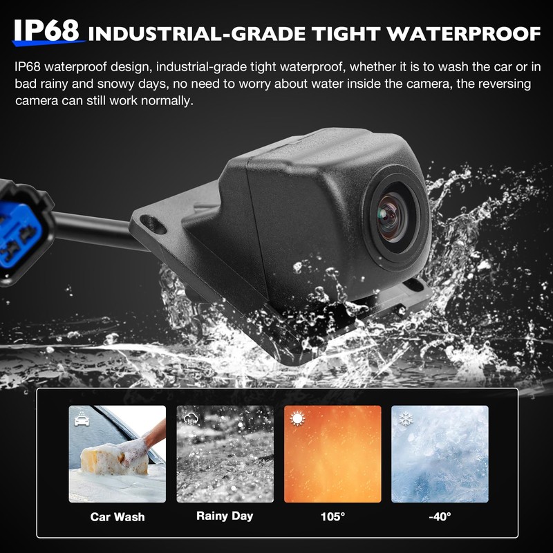 - đăIP68 WaterproofăIP68 industrial-grade tight waterproof, whether it is to wash the car or in bad rainy and snowy days, no need to worry about water inside the camera, the reversing camera can still work normally