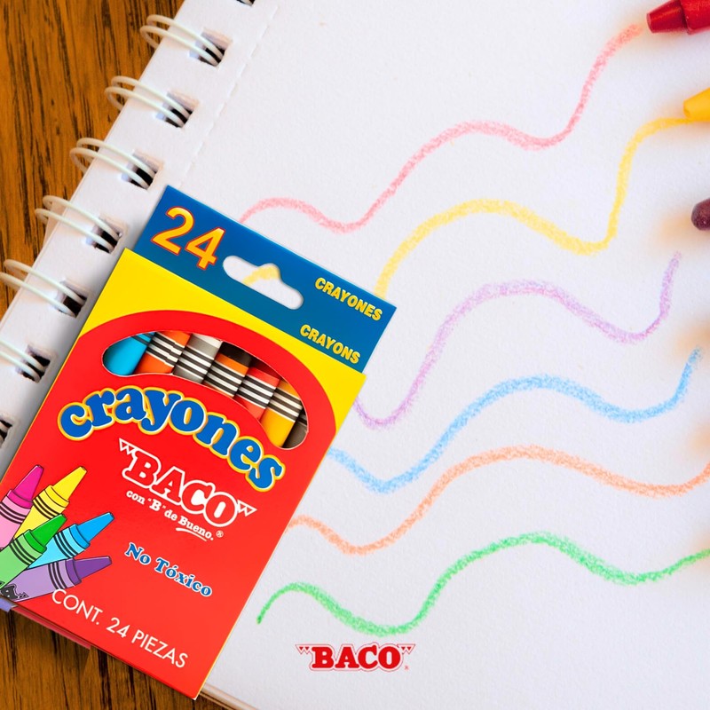 - Contiene: 1 caja con 24 crayones tamaño estándar de diferentes colores, no tóxicos.