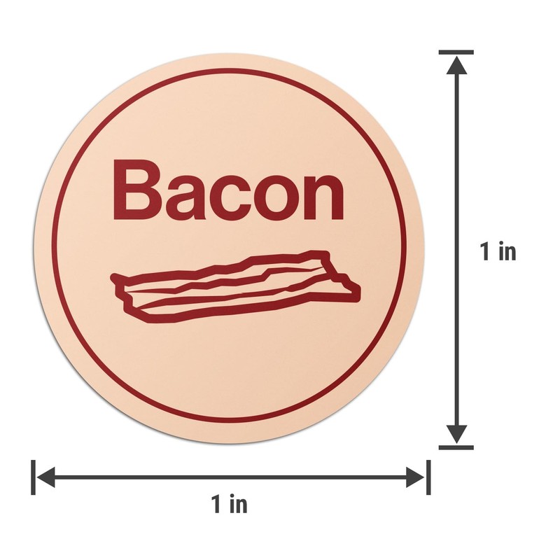 Bacon Stickers – 1" Round Food Labels (Beige/Red, 600 Count) | Meat Packaging Labels for Delis, Butcher Shops, Restaurants, and Food Trucks