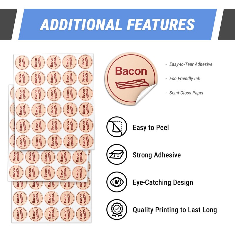 • CLEARLY MARK BACON PRODUCTS – Bold “Bacon” text for quick product identification in display cases or packaging - 30 Stickers per Sheet